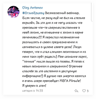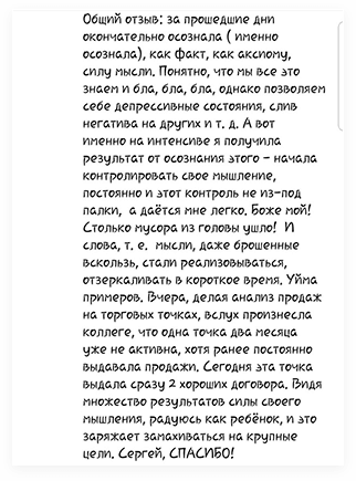 Я оставлял только то, что работает, самые сильные практики и действия. И, наконец, это превратилось в четкую 5-недельную методику по трансформации мышления для достижения любых целей в материальном мире. Методику Сергея Ершова.